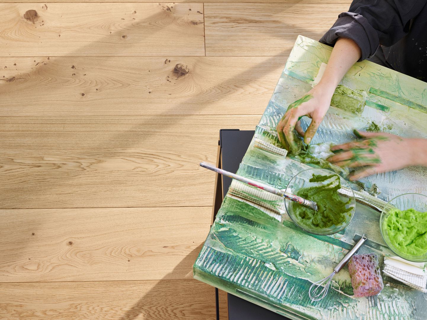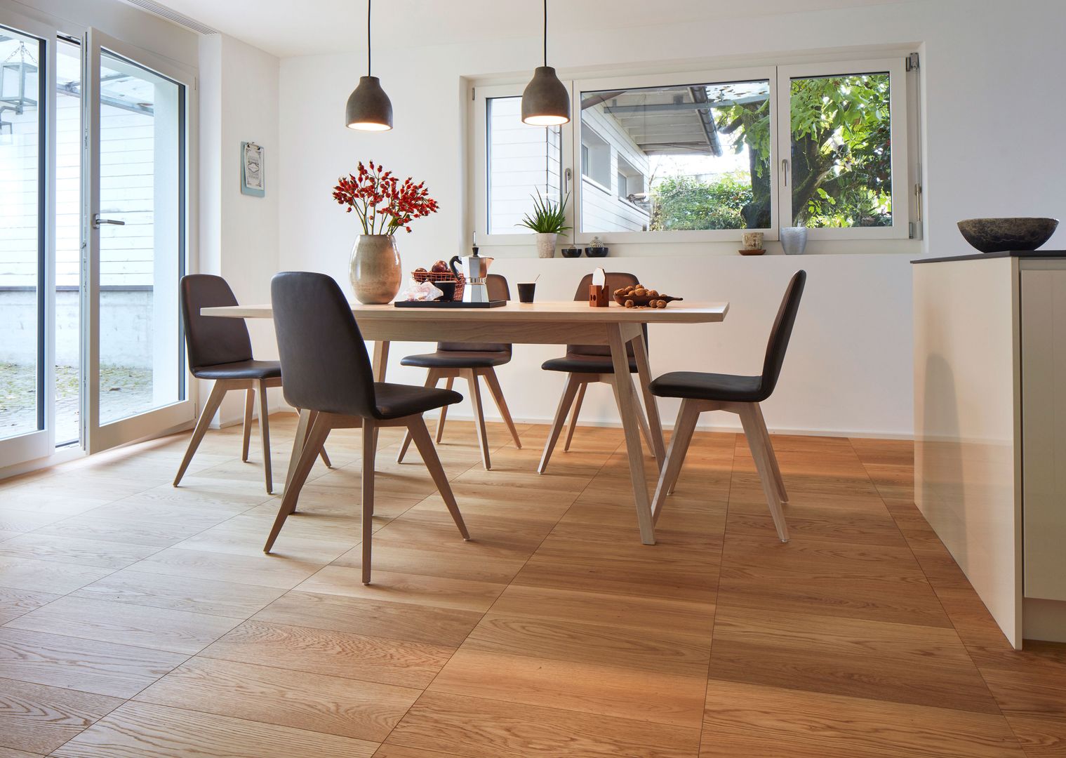 Was die Versiegelung der Oberflächen angeht, gibt es zwar nach wie vor viele lackierte Böden, die Tendenz geht jedoch eindeutig zu den mehrfach geölten Produkten – von hell bis fast schwarz in allen nur erdenklichen Farbspielen.
